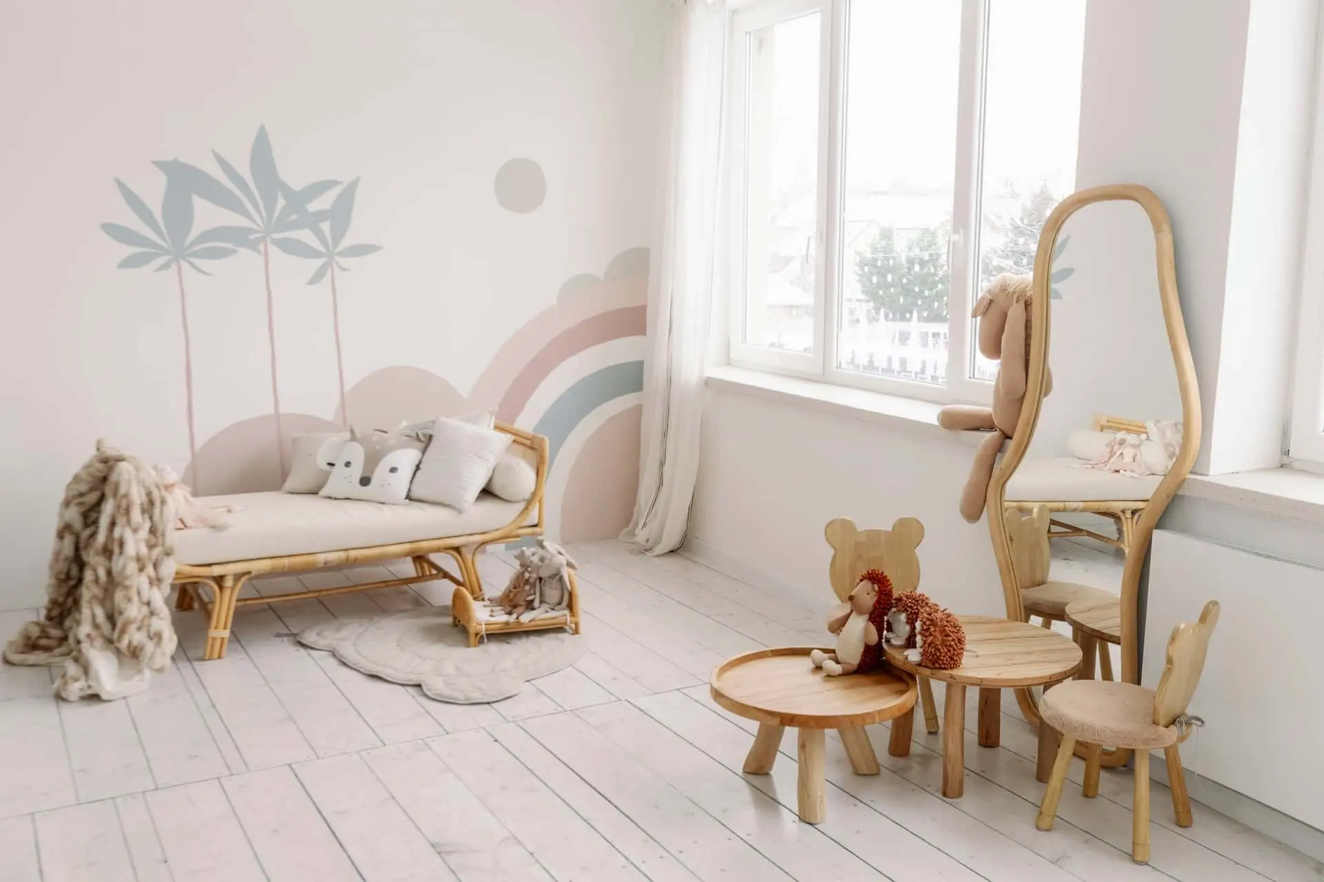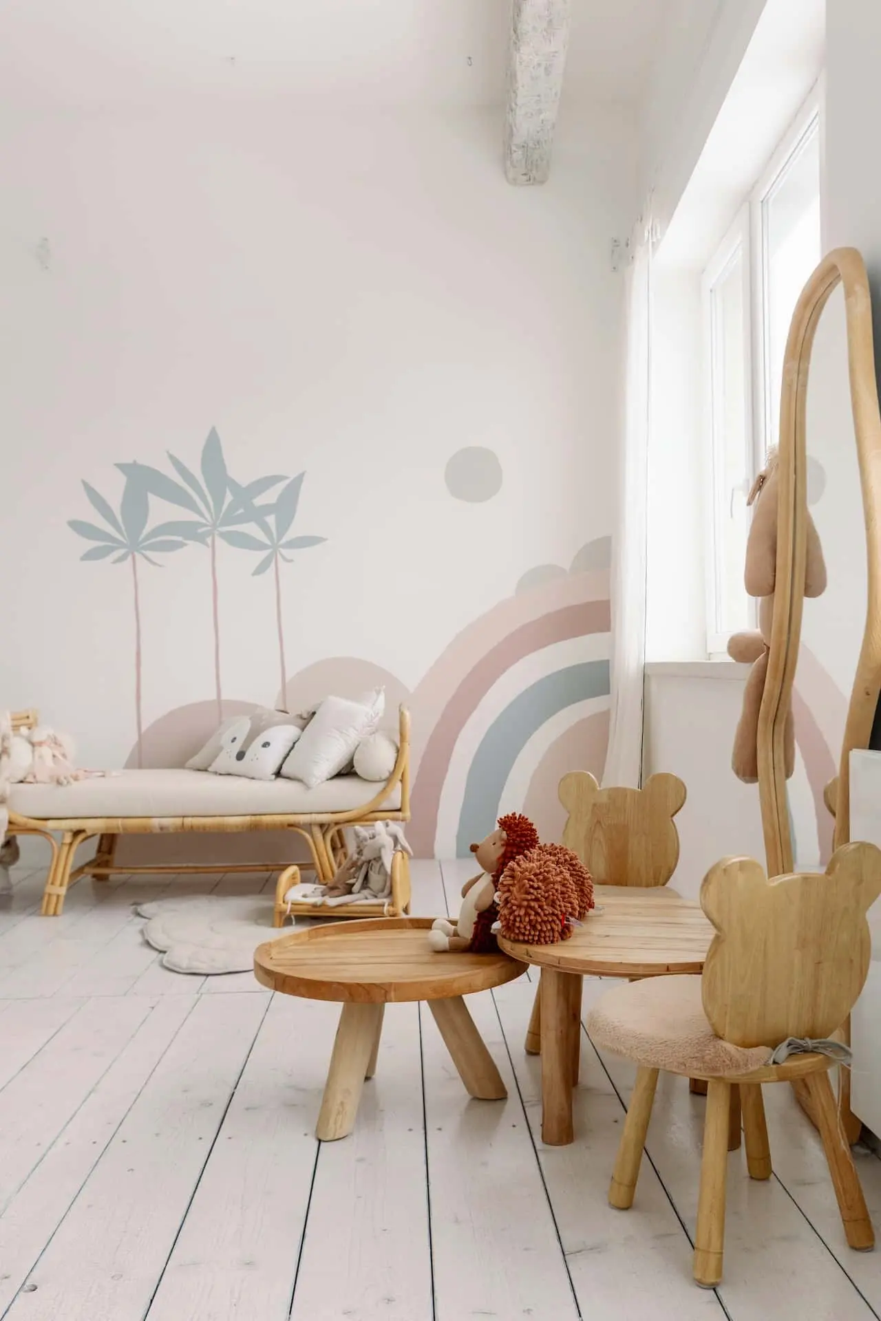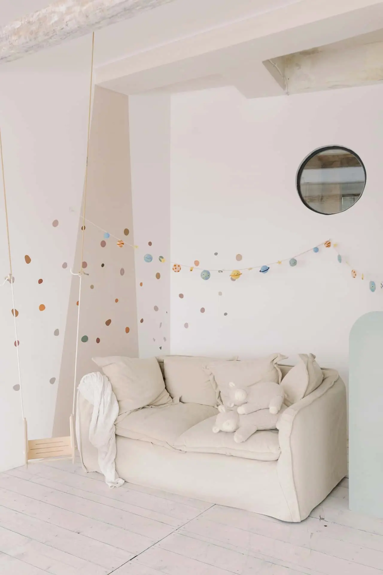 Világos, kényelmes, kisgyerekek fotózásához tökéletes terem lett. Színvilágában egységes, különböző elemeket kapott. A fa padlója csiszolt deszkából, fehérítve, hogy minél szebb fénye legyen. Sok gyerekjátékot találtok benne, kis hintát is. Keleti fekvése van. Nyári időszámításban éri csak közvetlen nap 10-ig.